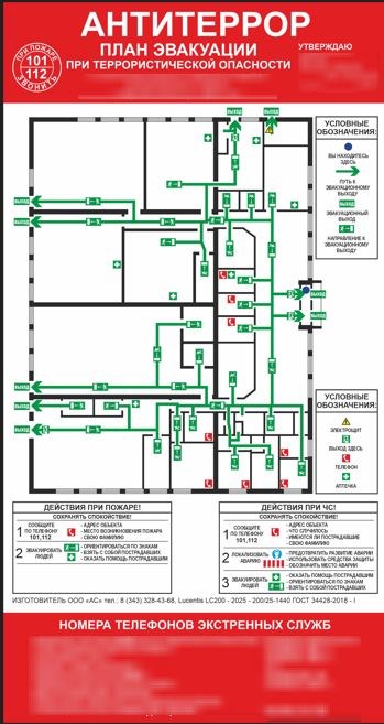 План Антитеррор 400 х 750мм, ПВХ - 2мм - фотолюминесцентный (вертикальный)