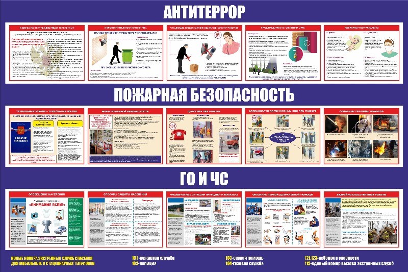 Стенд Антитеррор, Пожарная безопасность, ГО и ЧС размер 1800 х 1200 пластик 3 мм (Арт. 03096) Просим обратить Ваше внимание, что для удобства и целостности товара- изготовление и отправка данного стенда осуществляется двумя частями.