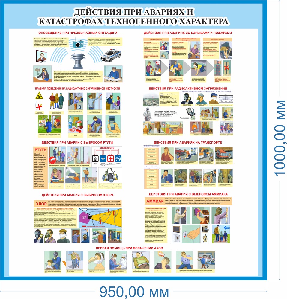 Стенд Действия при авариях и катастрофах техногенного характера размер 950 х 1000, ПВХ-3 мм