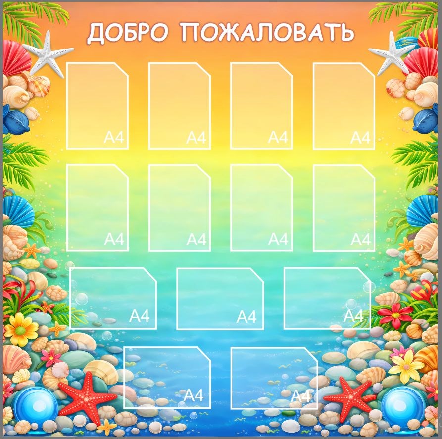 Стенд "Добро пожаловать" 1500 х 1500, карман А4-13шт., ПВХ-3мм (в морском стиле) (Арт.ДП8)