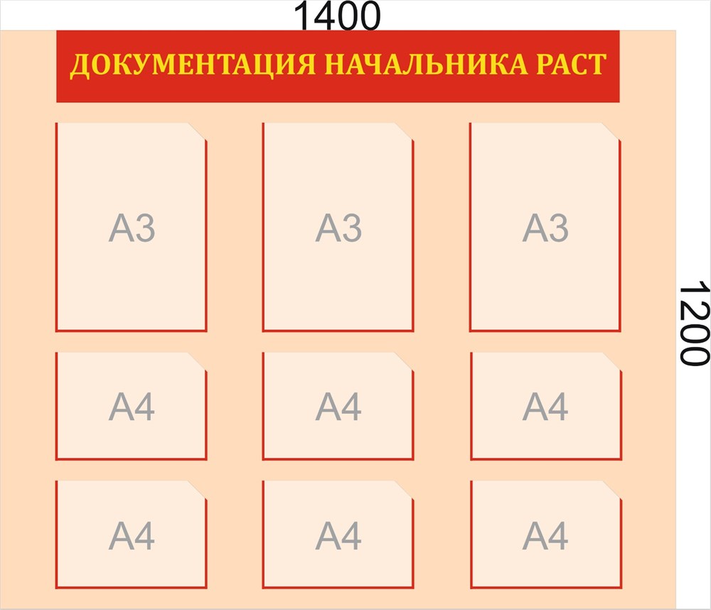 Стенд Документация Начальника РАСТ 1400 х 1200мм, ПВХ-3мм; карман А3-3шт., А4-6шт.