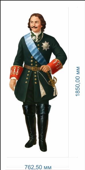 Стенд фигурный - Пётр I размер 762,5 х 1850 мм, ПВХ - 3мм