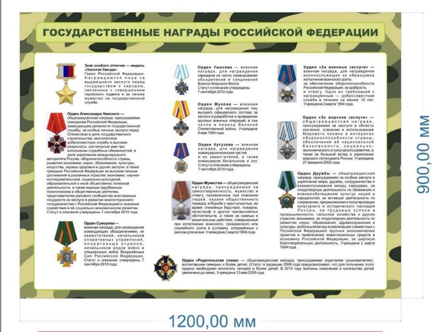 Стенд Государственные награды РФ 1200 х 900мм, ПВХ-3мм