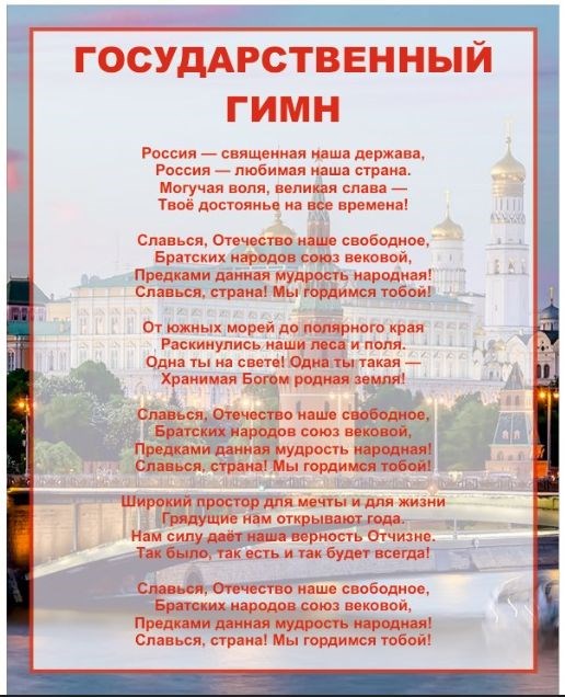 Стенд Государственный гимн РФ 800 х 1000мм, ПВХ-3мм
