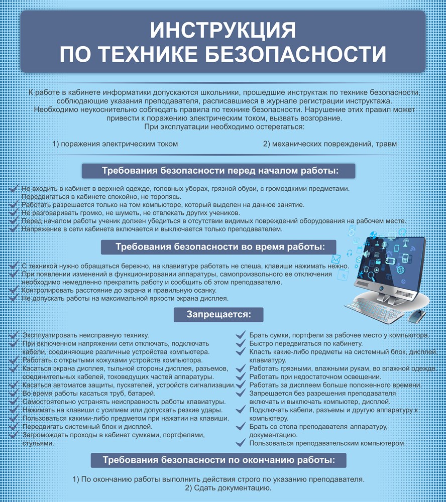 Стенд Инструкция по технике безопасности 800 х 900 пластик 3 мм