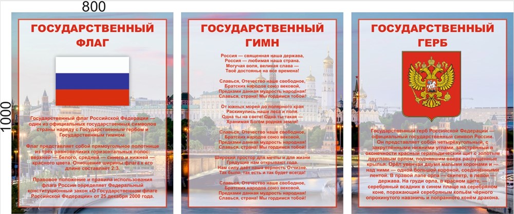 Стенд Комплект Государственных символов - 3шт. в комплекте - размер каждого 1000 х 800мм, ПВХ-3мм