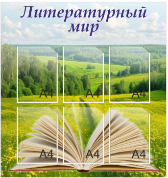 Стенд "Литературный Мир" 850 х 900 пластик 3мм, карманы А4-6шт.