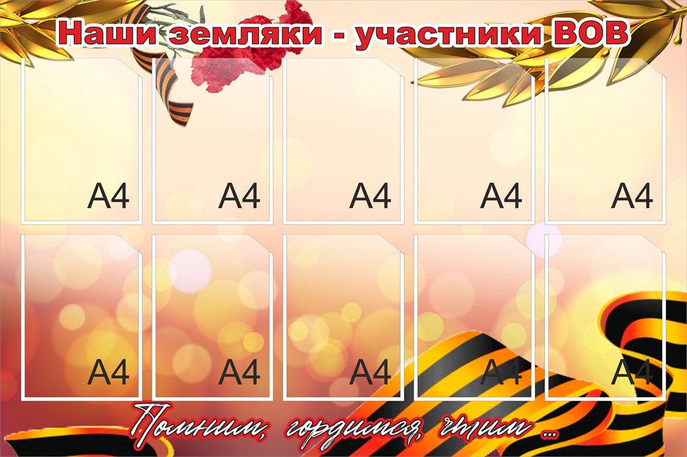 Стенд Наши земляки-участники ВОВ 1200 х 800 пластик 3 мм с карманами А4-10шт