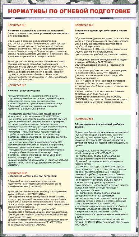 Стенд Нормативы по огневой подготовке 700 х 1200, ПВХ-3мм