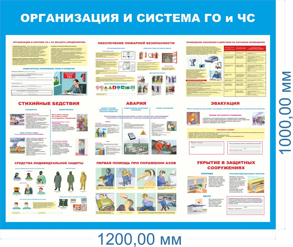 Стенд Организация и система ГО и ЧС размер 1200 х 1000, ПВХ-3мм (голубой фон)