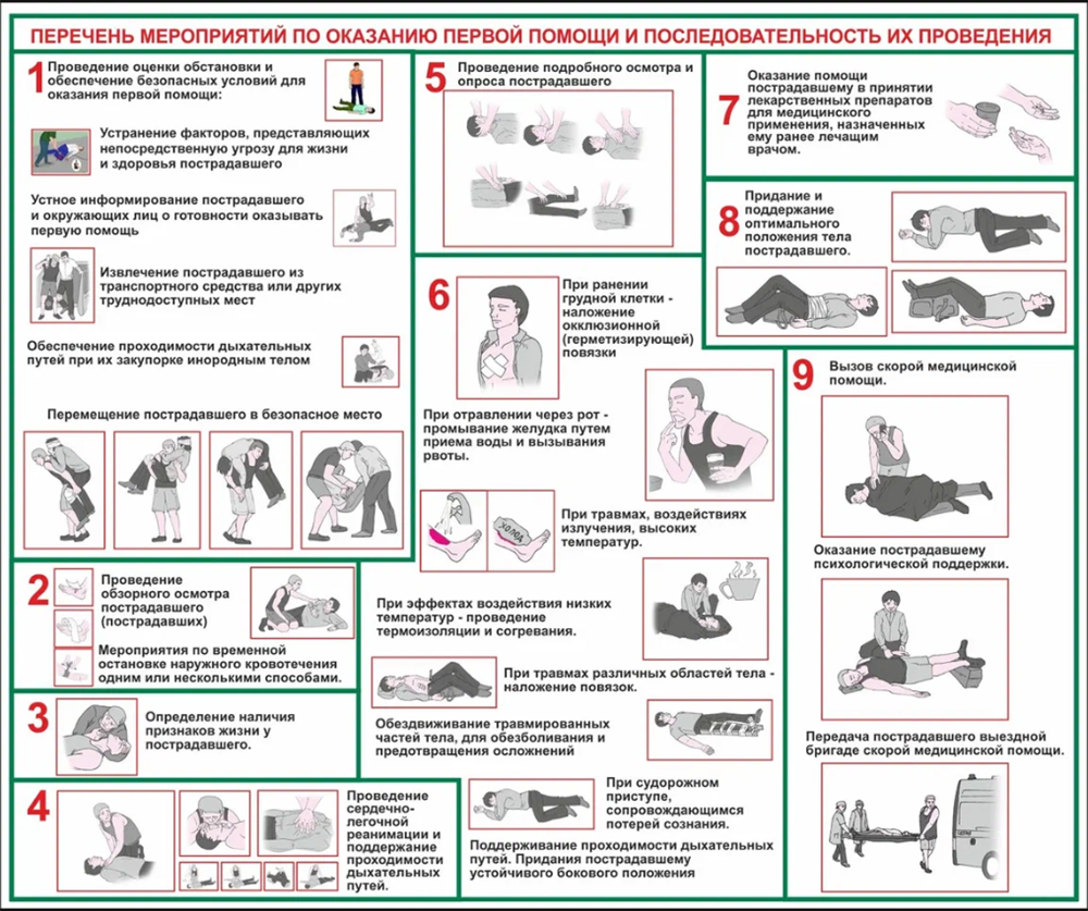 Стенд Перечень мероприятий по оказанию первой помощи 1200 х 1000мм, ПВХ-3мм
