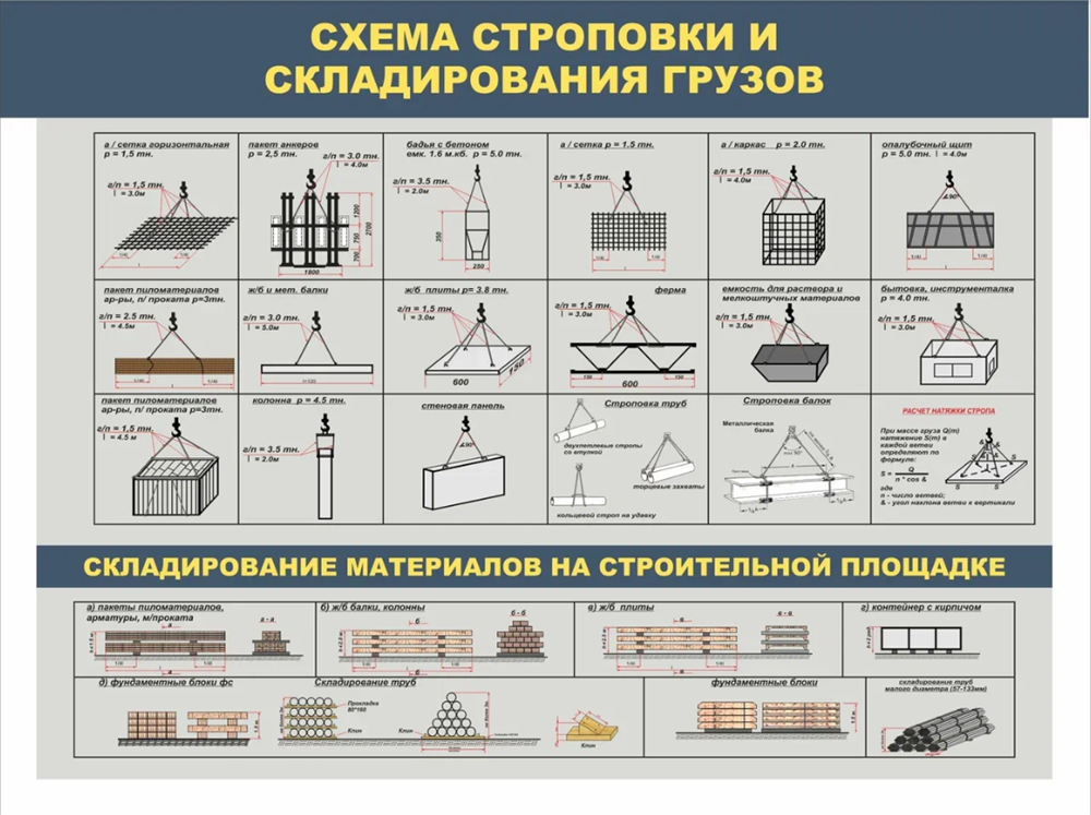 Стенд Схема строповки и складирования грузов 1200 х 900мм, ПВХ-3мм