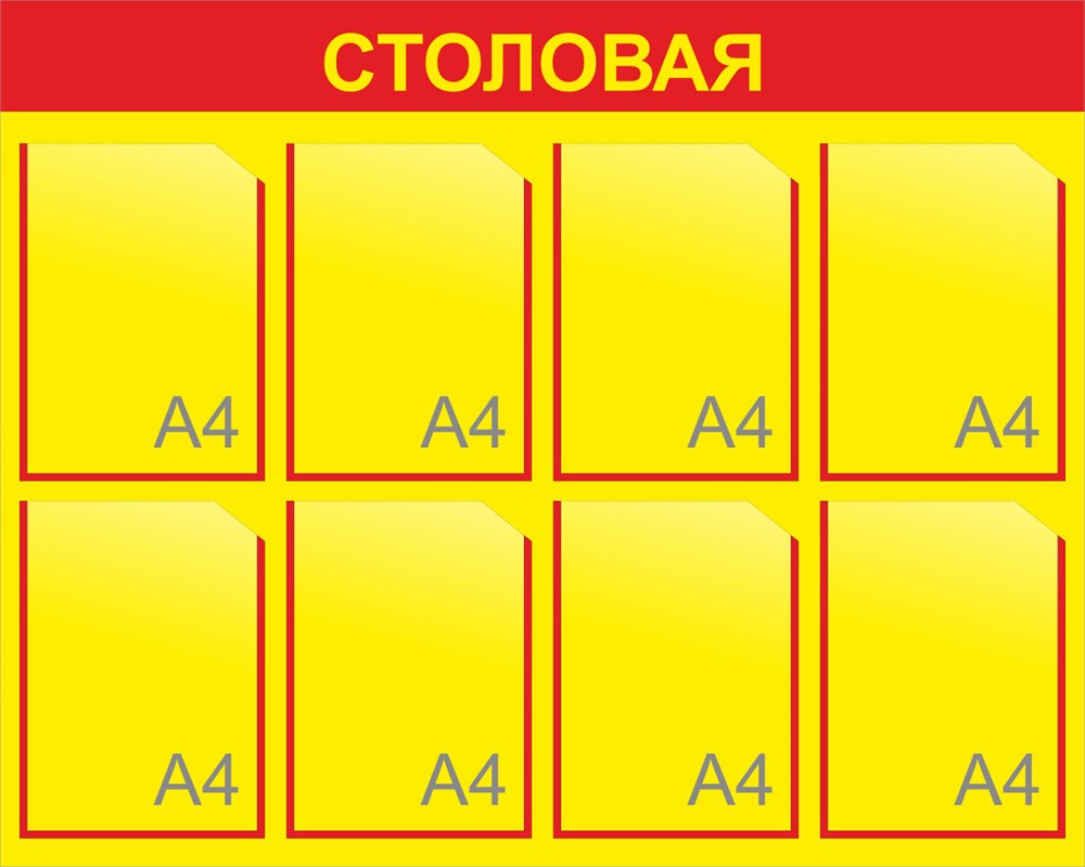 Стенд СТОЛОВАЯ 1000 х 800мм, ПВХ-3мм, карман А4-8шт. (жёлтый)