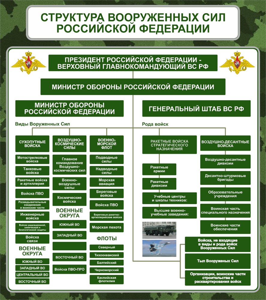Стенд Структура вооруженных сил РФ - 800 х 900 пластик 3мм