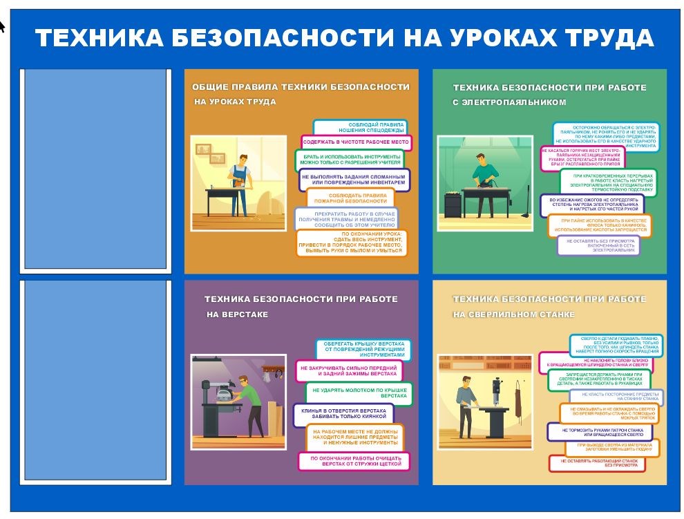 Стенд Техника безопасности на уроках труда 1000 х 750мм, карман А4-2шт.