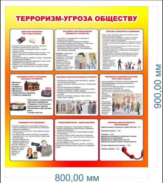 Стенд Терроризм -угроза обществу 800 х 900мм, ПВХ-3мм