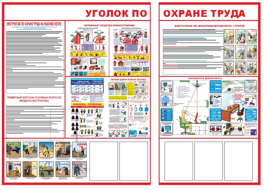 Стенд Уголок по охране труда размер 2000 х 1500 ( состоит из двух частей 1200 х 1500 и 830 х 1500) с карманами А4 количество 5 шт пластик 3 мм