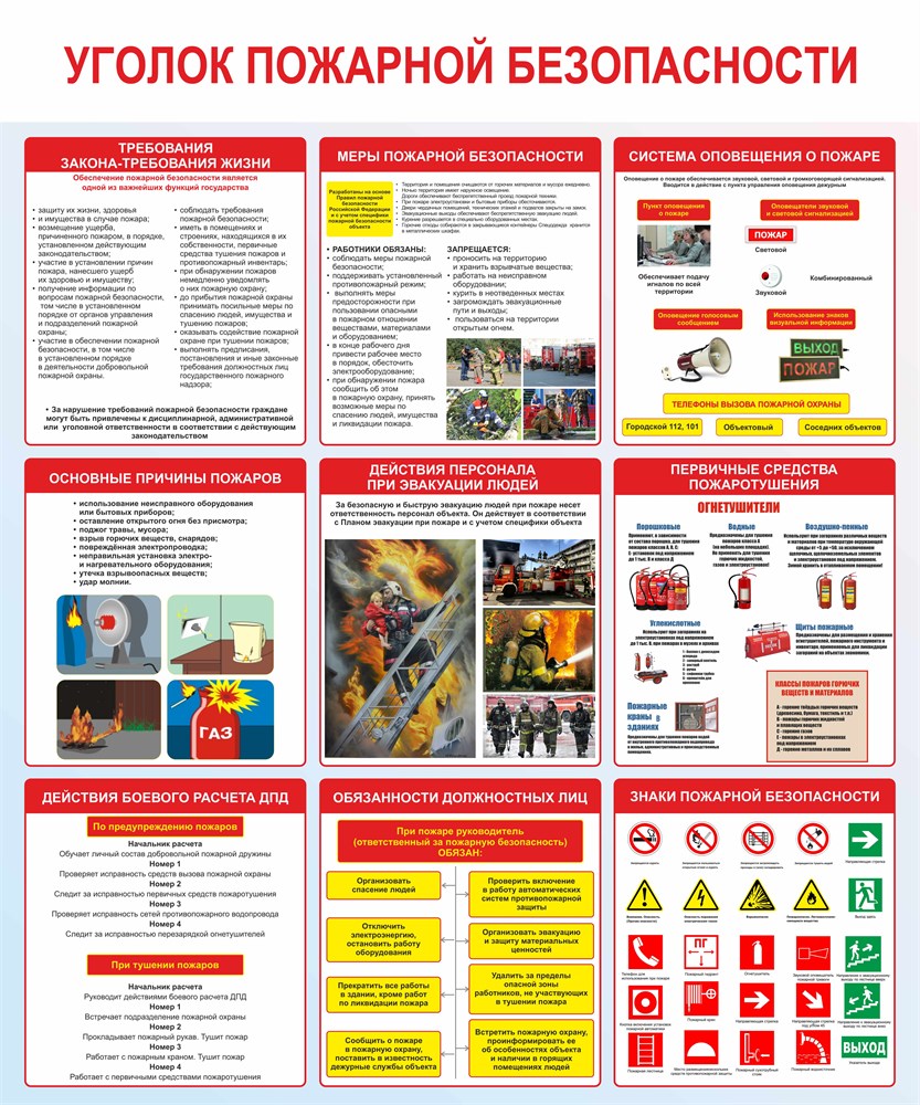 Стенд Уголок пожарной безопасности размер 1000 х 1200 пластик 3 мм