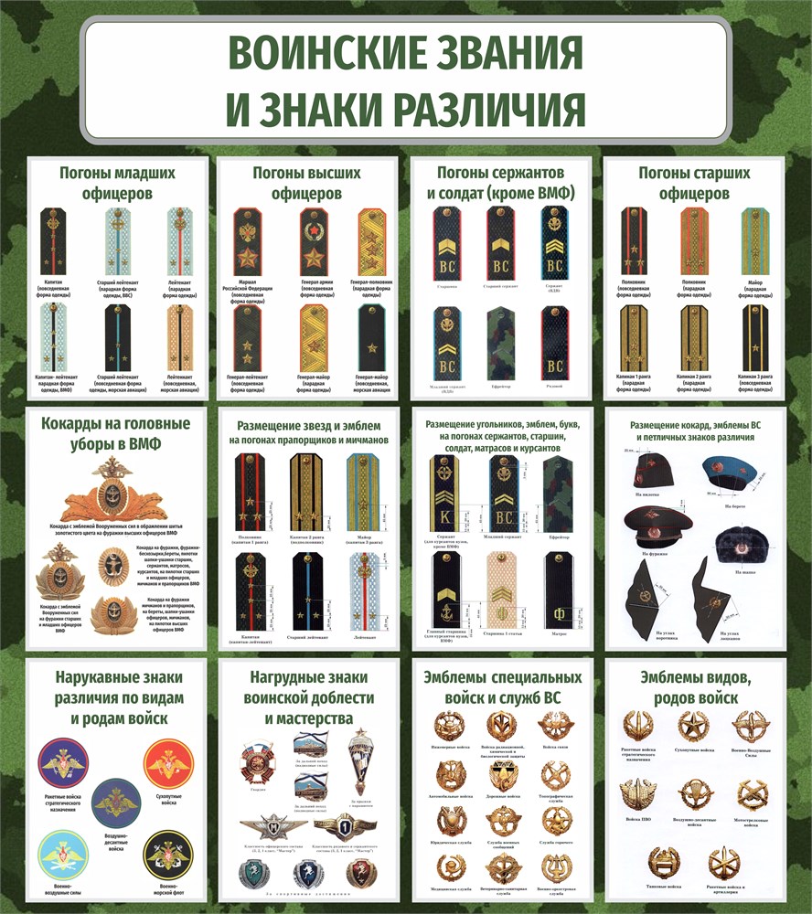 Стенд Воинские звания в вооруженных силах РФ 800 х 900 пластик 3мм