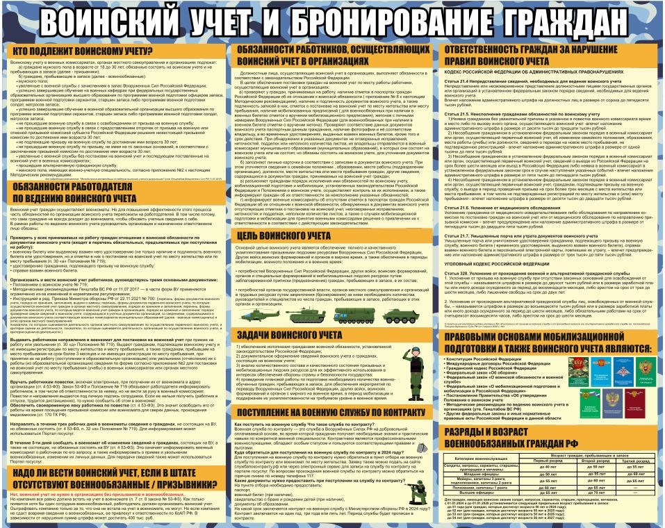 Стенд Воинский учет и бронирование граждан размер 1000 х 800 мм, ПВх-3мм