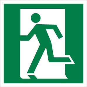 Е 01-01 выход здесь (Левосторонний) размер 200 х 200 фотолюминесцентная табличка пластик 2 мм