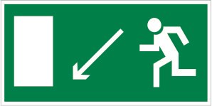Е 08 Направление к эвакуационному выходу на лево вниз размер 300 х 150 фотолюминесцентная наклейка